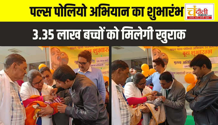 चंदौली जनपद के जिला स्तरीय पल्स पोलियो अभियान की शुरुआत मुख्य विकास अधिकारी आर साई जगत ने मेडिकल कालेज परिसर से नवजात शिशुओं को पिलाकर पल्स पोलियो अभियान की शुआत किया।