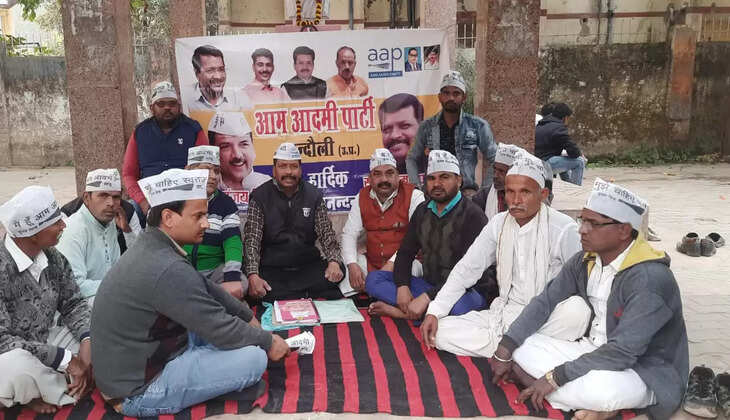 आम आदमी पार्टी ने नगर पंचायत के भ्रष्टाचार के विरोध में गांधी पार्क में दिया धरना