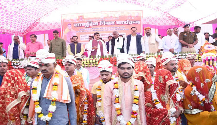 मुख्यमंत्री सामूहिक विवाह कार्यक्रम में जोड़ों को आशीर्वाद देने पहुंचे सांसद विधायक