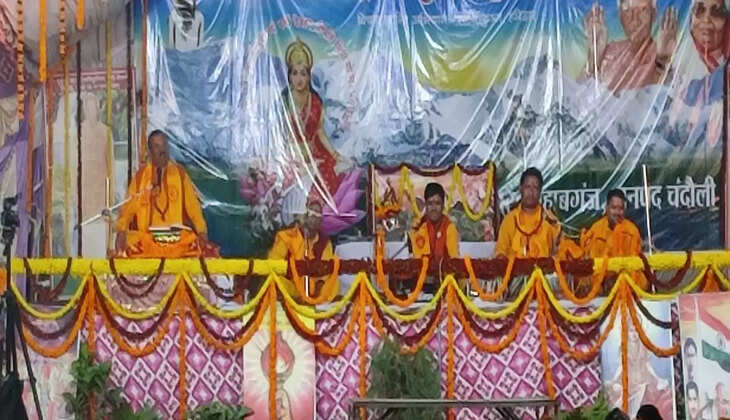 चंदौली जिले के शहाबगंज में कर्मनाशा नदी के तट पर आयोजित गायत्री परिवार शहाबगंज द्वारा आयोजित 24 कुंडीय गायत्री महायज्ञ एवं पावन प्रज्ञा पुराण कथा के प्रथम दिवस के पहली निशा में शांति कुंज हरिद्वार से पधारे व्यास अरुण खंडागले ने लोकमंगल जिज्ञासा प्रकरण मानव में देवत्व का उदय एवं धरती पर स्वर्ग अवतरण के लिए भगवान विष्णु एवं नारद संवाद का बड़ा सुंदर चित्रण किया।