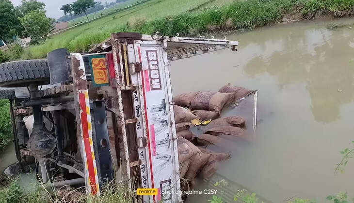 नहर में मैजिक पलटने से कई बोरा खाद्यान्न डूबा, सारिंगपुर कोटेदार के दुकानपर जा रहा था राशन