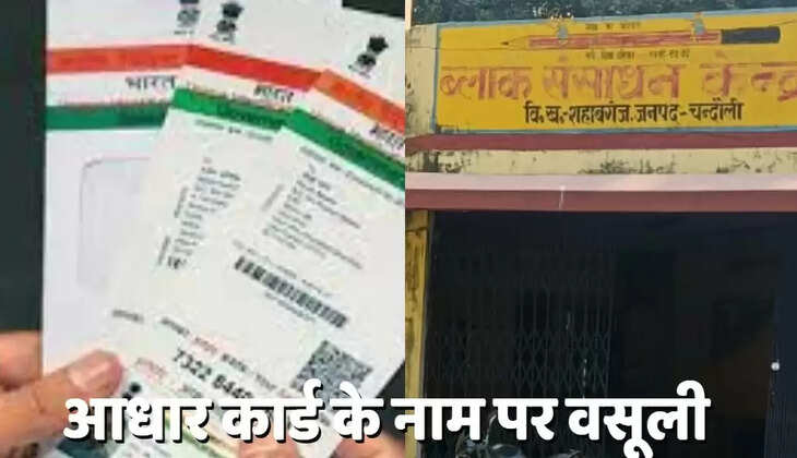 चंदौली जिले के शहाबगंज ब्लॉक संसाधन केंद्र पर आधार कार्ड बनाने के नाम पर जमकर अवैध वसूली की जा रही है। रुपये न देने पर कर्मचारी आधार कार्ड बनाने से मना कर देते हैं, जिससे आधार कार्ड बनवाने आने वाले लोग वापस लौट जाते हैं।
