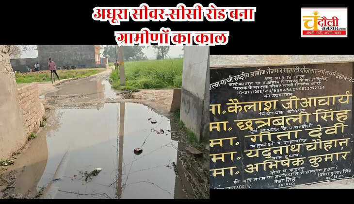 चंदौली के अमांव गांव में क्षेत्र पंचायत की लापरवाही से सीवर और सीसी रोड का काम अधूरा पड़ा है। सड़क पर भरे गंदे पानी के बीच ग्रामीणों ने उतरकर जोरदार प्रदर्शन किया और प्रशासन को बड़े आंदोलन की चेतावनी दी है।