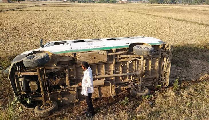 एम्बुलेंस गढ्ढे में पलटने के बाद भाग गया ड्राइवर, ये था असली कारण