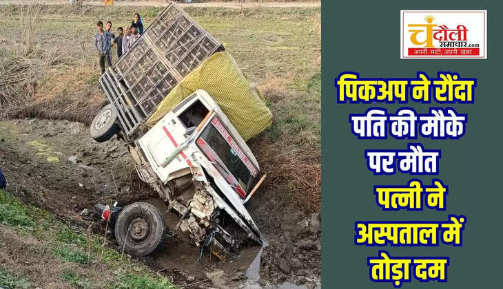 चंदौली जनपद के बबुरी थाना क्षेत्र अंतर्गत भुड़कुड़ा गांव के समीप शुक्रवार की शाम एक अत्यंत दुखद सड़क हादसा सामने आया है। एक बेकाबू और तेज रफ्तार पिकअप ने बाइक सवार दंपती को अपनी चपेट में ले लिया। इस भीषण भिड़ंत में पति की घटनास्थल पर ही सांसें थम गईं, जबकि गंभीर रूप से घायल पत्नी ने जिला अस्पताल में उपचार के दौरान दम तोड़ दिया। इस घटना के बाद से पूरे क्षेत्र में शोक की लहर दौड़ गई है।