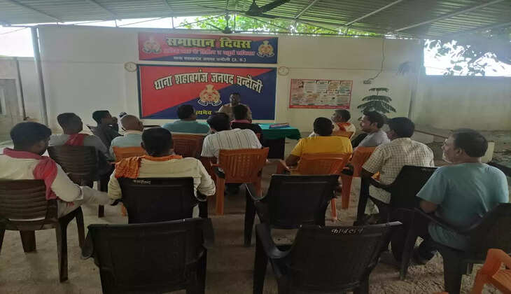 चंदौली जिले के शहाबगंज थाना परिसर में गुरुवार को प्रभारी निरीक्षक मिर्जा रिजवान बेग की अध्यक्षता में व्यापारियों की बैठक का आयोजन किया गया। बैठक में कस्बा के दर्जनों व्यापारियों ने भाग लिया और पुलिस-व्यापारी समन्वय को मजबूत बनाने के लिए विभिन्न मुद्दों पर चर्चा की गई।