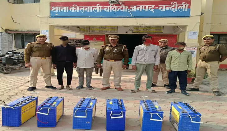 चंदौली जिले की चकिया कोतवाली पुलिस अज्ञात चोरों द्वारा की गयी वारदात का खुलासा करते हुए पुलिस ने 6 बैट्री की बरामदगी करते हुए 4 अभ्यस्त चोरों को गिरफ्तार किया है। जो सोलर पम्प और गाड़ियों की बैट्री चोरी के काम में शामिल थे।