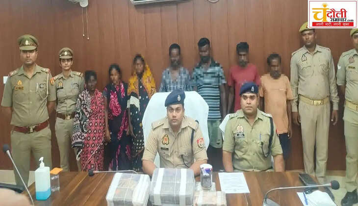 चंदौली जिले के चकिया में पुलिस ने 16 लाख रुपये की ठगी करने वाले अंतरराज्यीय गिरोह का पर्दाफाश किया है। पुलिस ने मुकदमा दर्ज होने के 12 घंटे के भीतर ही 7 आरोपियों को गिरफ्तार कर 15.80 लाख रुपये बरामद किए हैं।