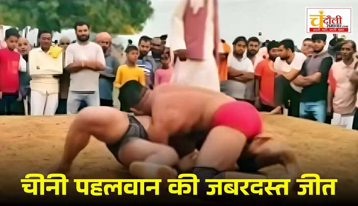 चीनी पहलवान ने लाल पहलवान को दी पटखनी, जीती 10 हजार की इनामी कुश्ती