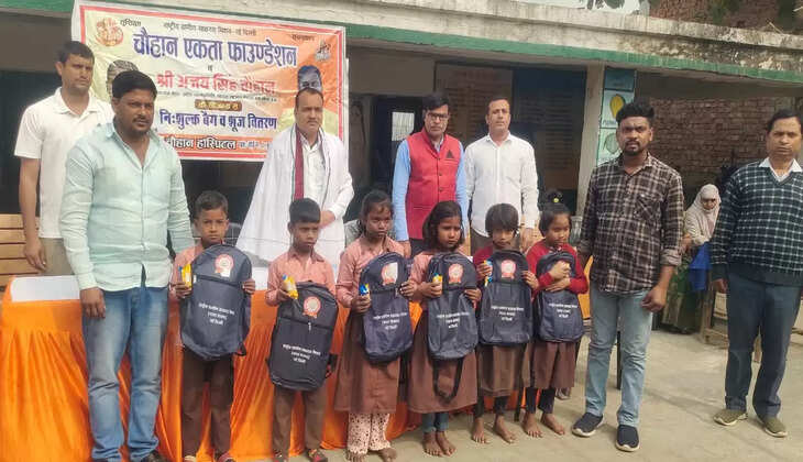 चौहान एकता फाउंडेशन ने 100 बच्चों को बांटे नि:शुल्क बैग, प्राथमिक विद्यालय बड़गांवा में किया वितरण