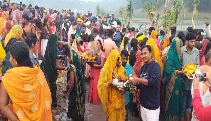 नाते रिश्तेदारों के साथ डूबते-उगते सूर्य को अर्घ्य