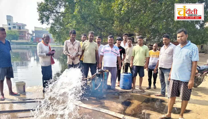 चंदौली जिला के चकिया नगर पंचायत स्थित मां काली मंदिर पोखरा पर पिछले दिन हुए भारी वर्षा के कारण डाला छठ पूजा के मुख्य स्थल तालाब में पानी लबालब भर गया था। इसे देखते हुए जय मां काली सेवा समिति, सहदुल्लापुर के अध्यक्ष गुरुदेव चौहान और चेयरमैन गौरव श्रीवास्तव ने समिति के अन्य पदाधिकारियों के साथ मिलकर तालाब में जल निकासी का कार्य शुरू किया।