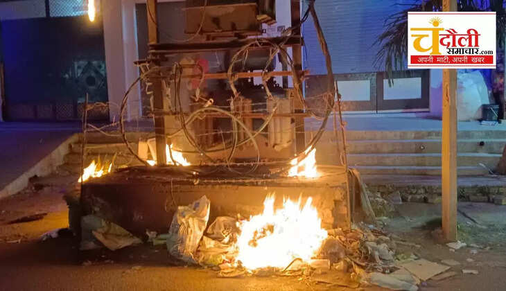 चंदौली के इलिया कस्बे में गुरुवार देर शाम ट्रांसफार्मर के पास भीषण आग लगने से अफरा-तफरी मच गई। ओवरलोडिंग के कारण हुई स्पार्किंग और जमा कूड़े ने आग को विकराल बना दिया, जिससे बाजार की विद्युत आपूर्ति पूरी तरह ठप हो गई है।