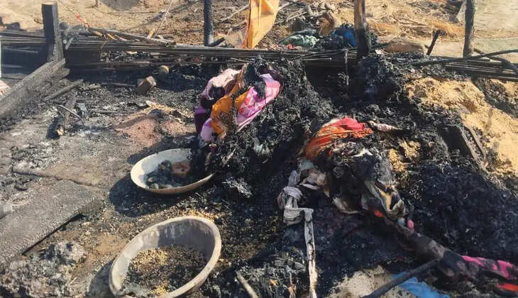 नगद सहित तिलहन-अनाज-खाद्यान्न सामग्री जलकर हुयी राख