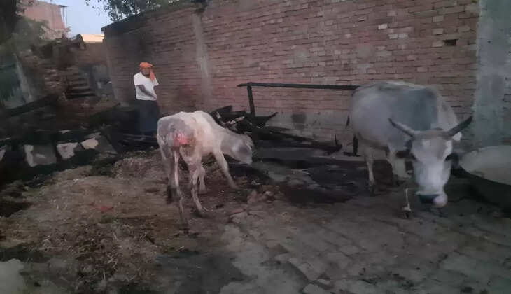 अज्ञात कारणों से मड़ई में लगी आग से दो मवेशी झुलसे