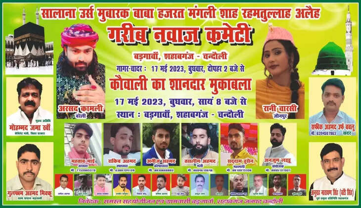 चंदौली जिले के शहाबगंज क्षेत्र के बड़गावां गांव में प्रत्येक वर्ष की भांति इस वर्ष भी 17 मई को हजरत मंगली शाह बाबा का सालाना उर्स पूरी अकीदत के साथ मनाया जाएगा। वहीं कार्यक्रम के बतौर मुख्य अतिथि बिहार सरकार के अल्पसंख्यक कल्याण मंत्री मोहम्मद जमा खान रहेंगे। वहीं विशिष्ट अतिथि शहाबगंज पूर्व प्रमुख प्रतिनिधि अनुग्रह नारायण उर्फ बंटी सिंह रहेंगे। इस आशय की जानकारी कमेटी के सदर सफीक अहमद बबलू व अध्यक्ष महताब अहमद ने दी है।