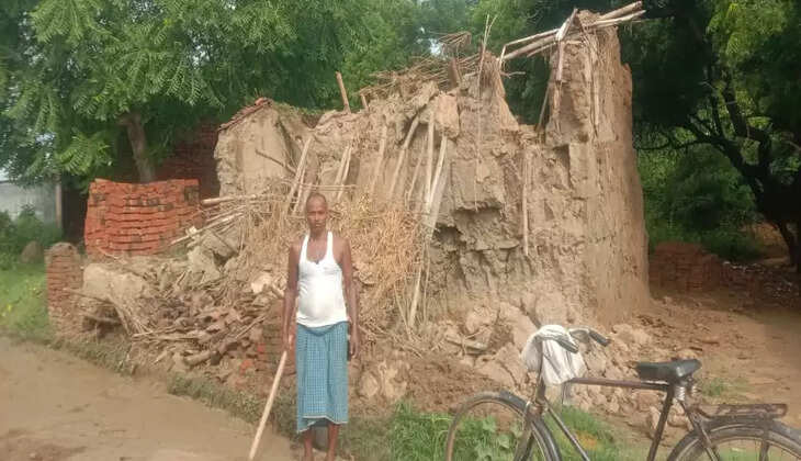 बारिश से जलालुद्दीन का कच्चा मकान धराशायी, दब गया गृहस्ती का सारा सामान