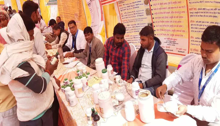 आयुर्वेद स्टाल पर लगी ग्रामीणों की भीड़