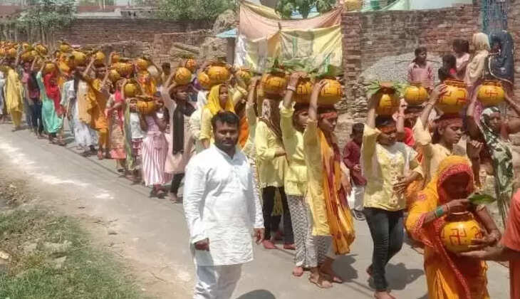 108 कलश के साथ कन्याओं ने पूरे गांव में भ्रमण