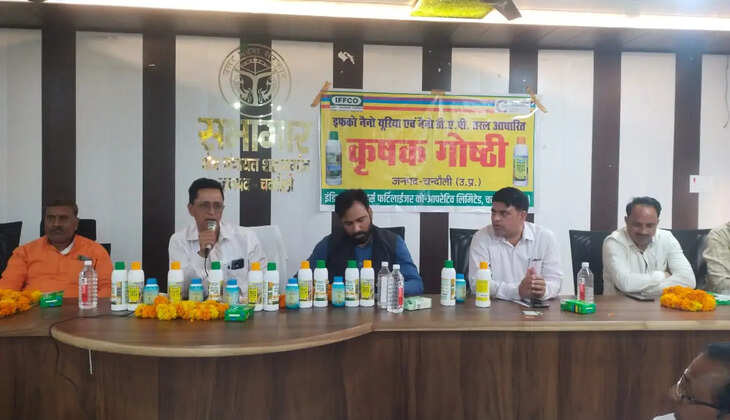 चंदौली जिले के शहाबगंज ब्लाक सभागार में सोमवार को इफको द्वारा कृषक गोष्ठी का आयोजन किया गया। जहां इफको द्वारा उत्पादित प्रोडक्ट व उसके प्रयोग के बारे में जानकारी दी गई। वही किसानों कि समस्याओं का निराकरण किया गया।