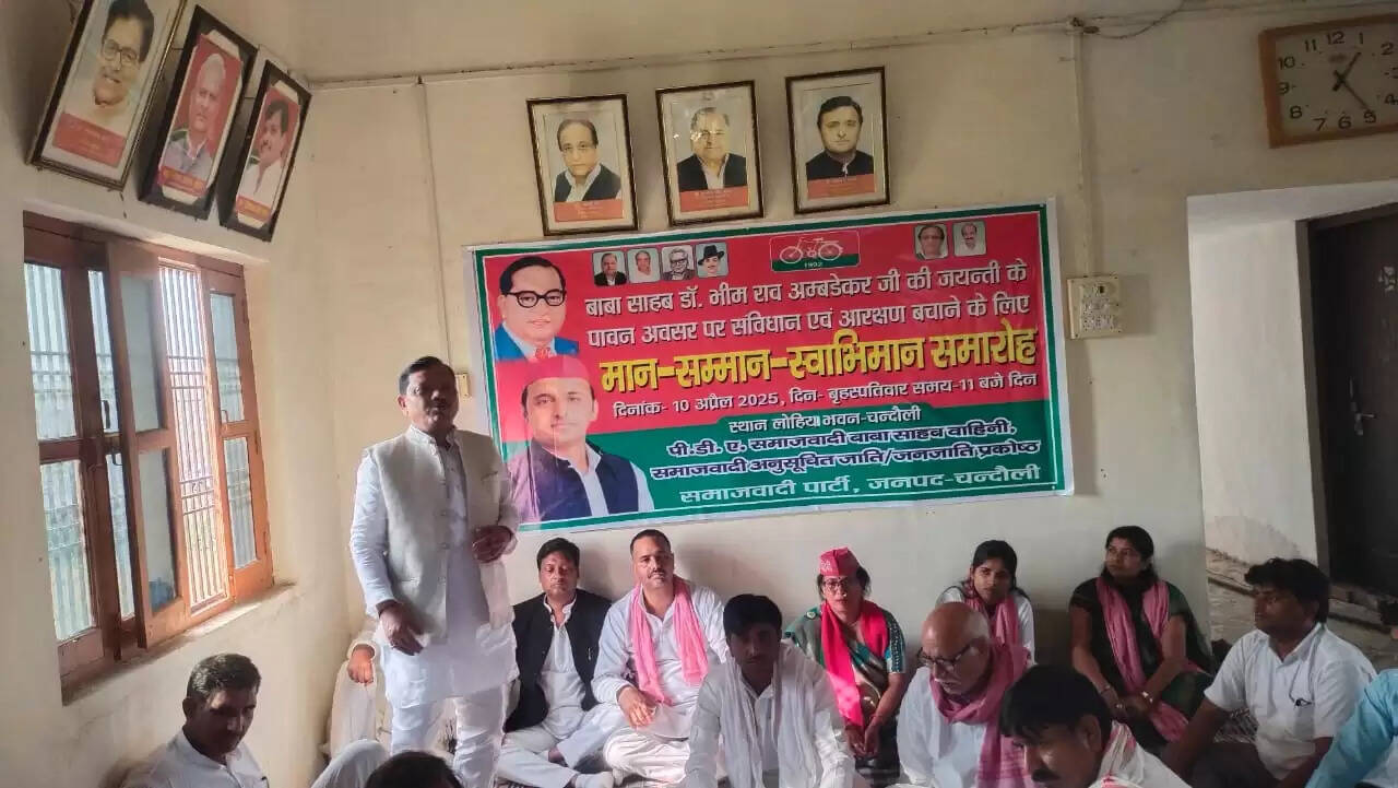चन्दौली जिले में समाजवादी पार्टी ने अंबेडकर जयंती के पावन अवसर पर संविधान एवं आरक्षण बचाने के लिए मान सम्मान स्वाभिमान समारोह का आयोजन चंदौली लोहिया भवन में किया गया।