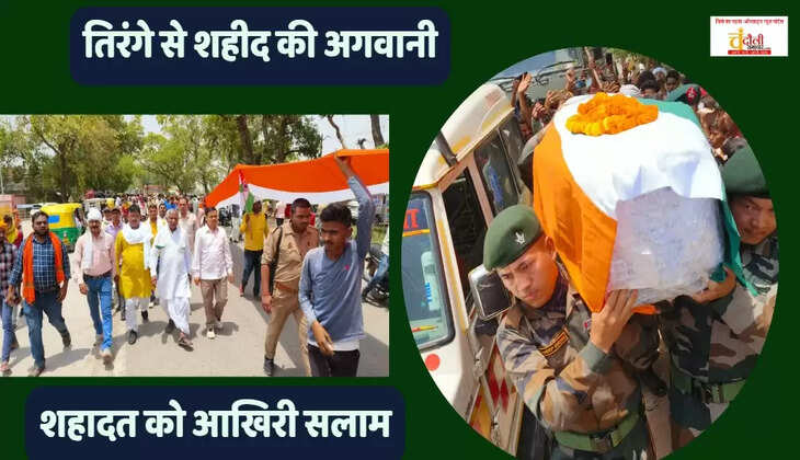 25 मीटर लंबे तिरंगे से हुयी शहीद आलोक राव की अगवानी, देशभक्त को विदाई देने के लिए उमड़े लोग