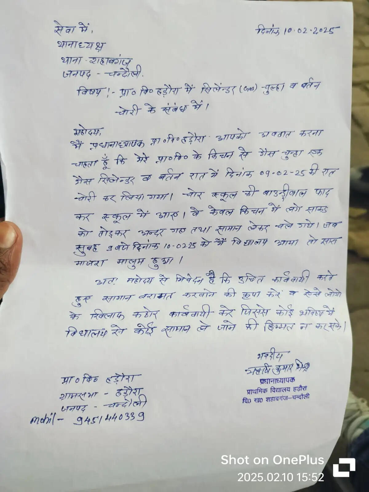जिले के शहाबगंज थाना क्षेत्र के हडौरा गांव स्थित प्राथमिक विद्यालय से चोरों ने ताला तोड़कर कक्ष में रखा एमडीएम का बर्तन व गैस चूल्हा चुरा ले गए। प्रधानाध्यापक ने चोरी की घटना की लिखित तहरीर थाने पर दिया है और कार्रवाई की मांग की है।