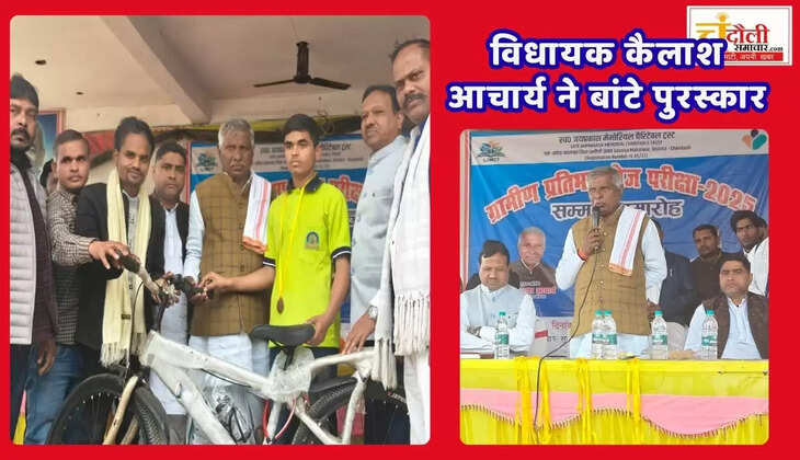 समारोह के मुख्य अतिथि क्षेत्रीय विधायक कैलाश आचार्य ने विजयी छात्रों को पुरस्कार वितरित किए। प्रतियोगिता में कक्षा 10 में प्रथम स्थान पाने वाले छात्र ओम तिवारी को 12,000 रुपये की छात्रवृत्ति प्रदान की गई। वहीं, कक्षा 9 में अव्वल रहे अंश तिवारी को आधुनिक टैबलेट देकर सम्मानित किया गया। कक्षा 6 की कृतिज्ञा सिंह, कक्षा 7 के लकी पाल और कक्षा 8 के प्रत्यक्ष मौर्य को उनके शानदार प्रदर्शन के लिए प्रोत्साहन स्वरूप रेंजर साइकिल प्रदान की गई। पुरस्कार पाकर छात्रों के चेहरे खुशी से खिल उठे।