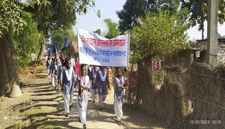 NSS के स्वयंसेवकों ने सड़क सुरक्षा के लिए निकाली रैली, प्राथमिक विद्यालय में किया श्रमदान
