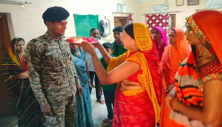 CRPF जवान कमलेश को आया बुलावा तो मां-पत्नी ने विजय का तिलक लगाकर किया रवाना