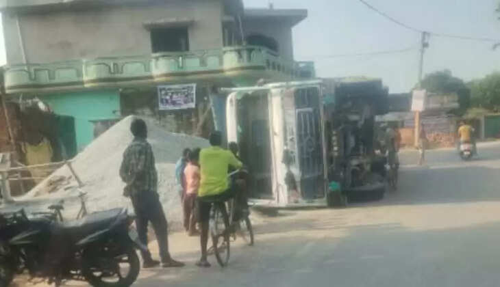 ओवरलोड गिट्टी लदी डंपर पलटने से हादसा