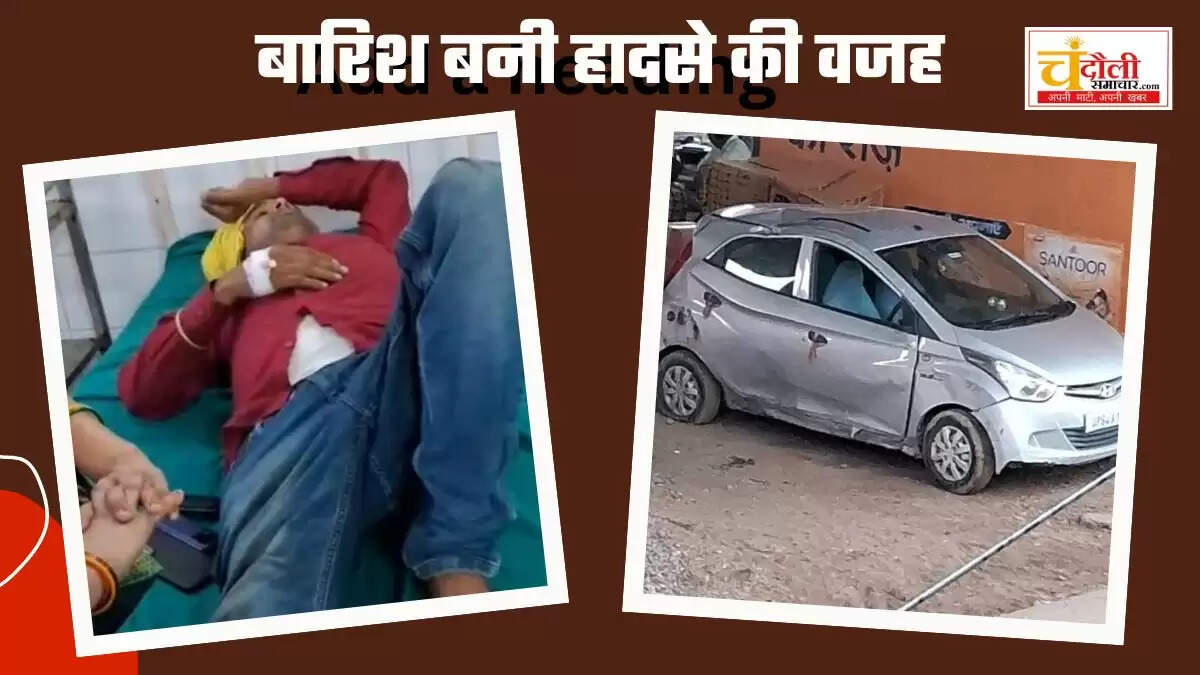 बारिश बनी हादसे की वजह, रेलवे कर्मचारी की गाड़ी पलटी, गंभीर रूप से घायल