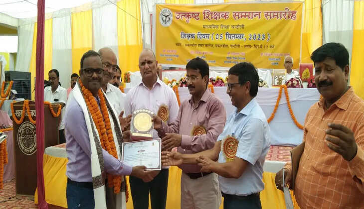 चंदौली जिले के शहाबगंज इलाके में माध्यमिक शिक्षा विभाग द्वारा पिछले दिनों शिक्षक दिवस के अवसर पर सकलडीहा इंटर कॉलेज में आयोजित शिक्षक सम्मान समारोह में क्षेत्र के मूसाखाड़ गांव स्थित राजकीय हाई स्कूल के प्रधानाचार्य डॉ मुकेश कुमार श्रीवास्तव को संयुक्त शिक्षा निदेशक वाराणासी मण्डल डॉ रामशरण सिंह द्वारा प्रमाण पत्र, स्मृति चिन्ह व अंगवस्त्रम देकर सम्मानित किया गया।