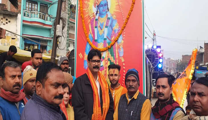 हिंदू युवा वाहिनी ने प्रभु श्री राम की मंदिर का प्राण प्रतिष्ठा हेतु जुलूस निकालकर लोगों को दिया न्योता