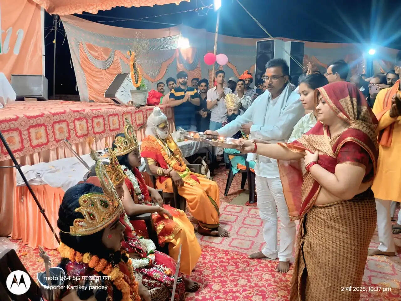 इस दौरान मंच पर राजा जनक ,अयोध्या के राजा दशरथ, गुरु वशिष्ठ मुनि की उपस्थिति में राम और सीता का विवाह की आकर्षक झांकी प्रस्तुत की गई। जो कि श्रद्धालुओं के आकर्षण का केंद्र बनी रही। इस दौरान संगीतमयी भजन की दमदार प्रस्तुति हुई।जिसे सुनकर श्रद्धालु झूमने से खुद को नहीं रोक सके।