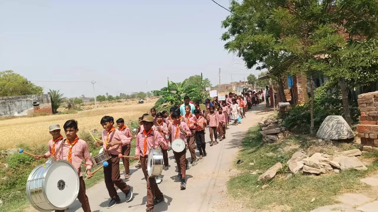 बैंड बाजा के साथ निकाली गई स्कूल चलो अभियान की रैली, शत प्रतिशत नामांकन पर दिया गया बल