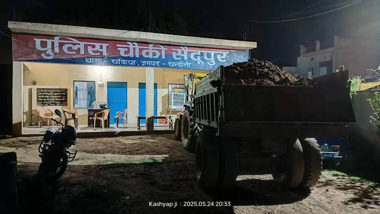 बता दें कि सैदूपुर चौकी अंतर्गत कौडिहार गांव के आस पास पहाड़ी क्षेत्र में अवैध रूप से मिट्टी खनन की सूचना चकिया एसडीएम को मिली। इसपर एसडीएम ने पुलिस बल के साथ मौके पर पहुंचे तो जेसीबी संचालक जेसीबी लेकर फरार हो गया, वहीं एक ट्रैक्टर ट्राली मौके पर मिट्टी भर कर जा रही थी। जिसे पुलिस ने दबोच लिया,और कार्रवाई करते हुए सीज कर दिया। वहीं पुलिस को देखकर अन्य ट्रैक्टर चालक व जेसीबी आपरेटर भाग गए। पुलिस एक ट्रैक्टर ट्राली सैदूपुर चौकी ले गई।