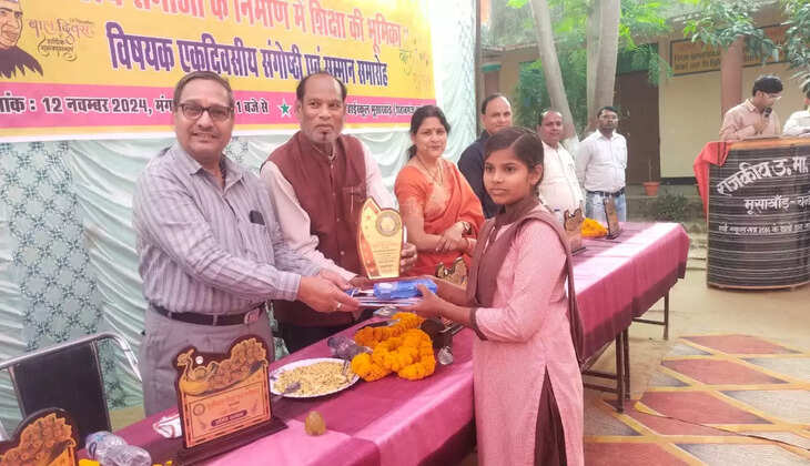 आपको बता दें कि गोष्ठी व सम्मान समारोह का शुभारंभ सीआरपीएफ कमांडेंट श्यामसुंदर, प्राचार्य संगीता सिन्हा, काशी विद्यापीठ पत्रकारिता संस्थान के प्रोफेसर ओम प्रकाश सिंह, प्रधानाचार्य डाक्टर मुकेश ने संयुक्त रूप से मां सरस्वती के तैल चित्र पर माल्यार्पण कर दीप प्रज्वलित कर किया। संगोष्ठी के दौरान 9 नवम्बर को राजकीय हाईस्कूल स्कूल में आयोजित निबंध प्रतियोगिता के 30 विजेताओं को शील्ड, प्रणाम पत्र व शिक्षण सामग्री वितरित किया गया। वहीं 150 छात्र छात्राओं को शिक्षण सामग्री, जनरल नालेज व स्पीकिंग की बुक वितरित किया गया।