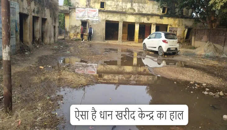 धान क्रय केंद्र परिसर में भर गया है नाली का पानी, किसानों को धान बेचने में होगी परेशानी