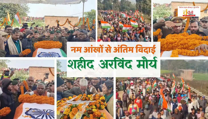 भारतीय सेना के जवान अरविंद मौर्य का पार्थिव शरीर राष्ट्रीय सम्मान के साथ उनके पैतृक गांव शहाबगंज पहुंचा। नम आंखों से हजारों लोगों ने अपने वीर सपूत को अंतिम विदाई दी। सेना की टुकड़ी ने गार्ड ऑफ ऑनर देकर सम्मानित किया।