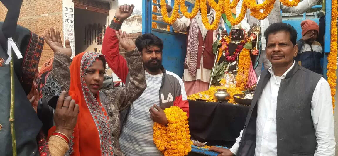 मंदिर में शनिदेव की मूर्ति स्थापना हेतु निकाला गया जुलूस, भक्तों ने लगाये जयकारे