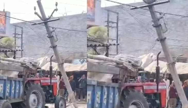 अनियंत्रित ट्रैक्टर की टक्कर से बिजली पोल क्षतिग्रस्त