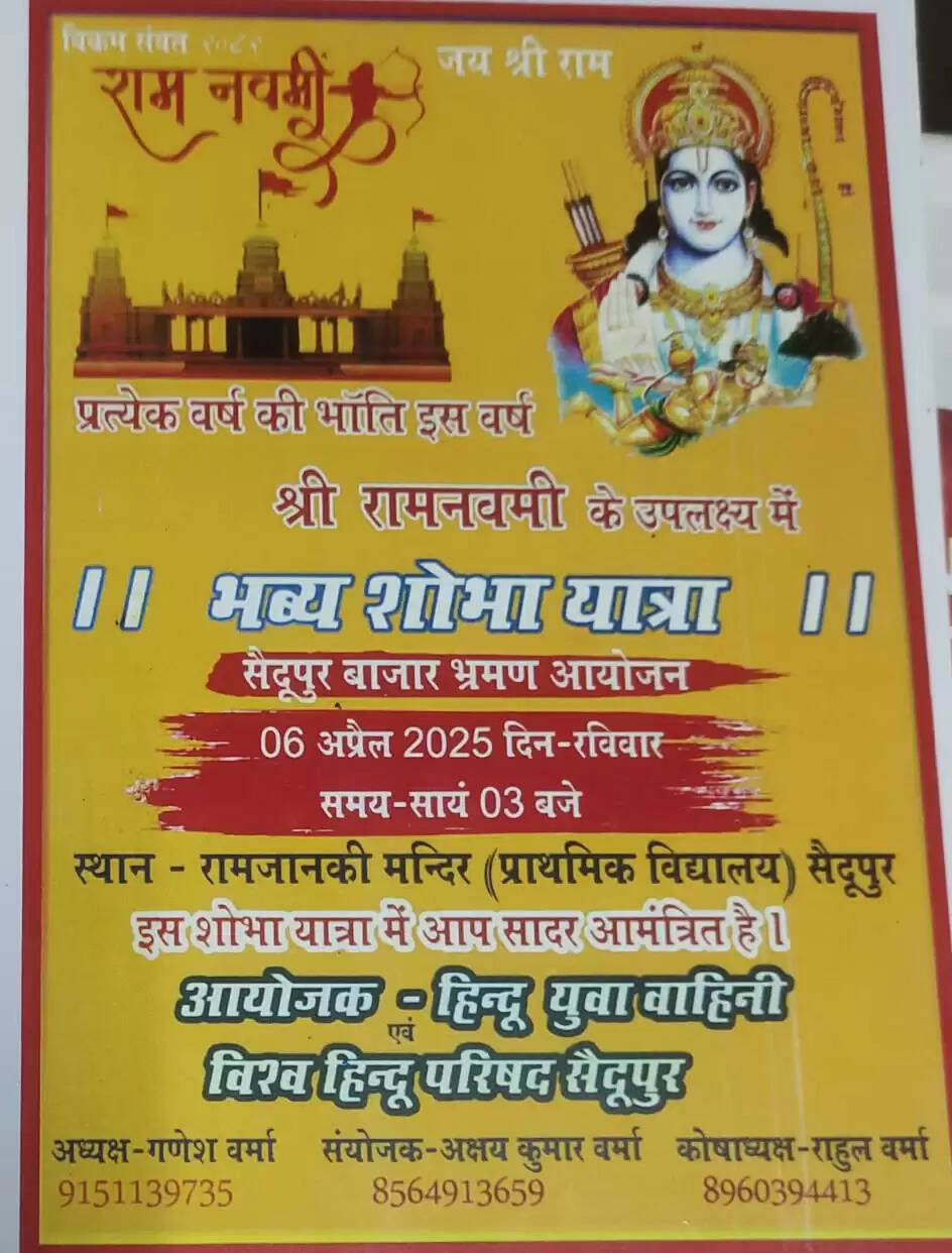 6 अप्रैल को सैदूपुर में निकलेगी भव्य शोभायात्रा