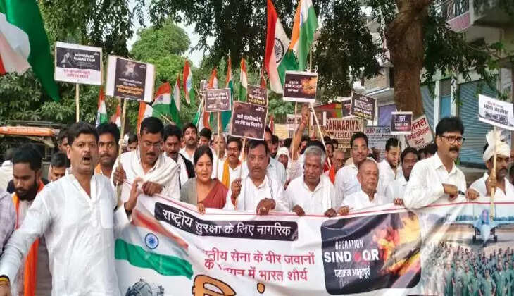 चंदौली जिला के चकिया नगर मंगलवार की शाम देशभक्ति के रंग में रंगा दिखा। हाल ही में पहलगाम में पाकिस्तान प्रायोजित आतंकी घटना के जवाब में भारत के ‘ऑपरेशन सिंदूर’ की सफलता के समर्थन में क्षेत्रवासियों ने एक भव्य तिरंगा यात्रा निकाली। इस यात्रा में युवा, बच्चे, महिलाएं और बुजुर्ग सभी उत्साह से शामिल हुए।