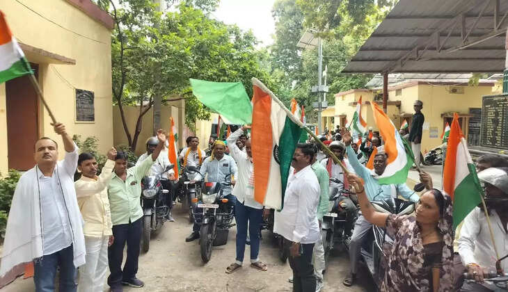 पंचायती राज विभाग की मोटरसाइकिल तिरंगा यात्रा में गूंजे देशभक्ति के नारे