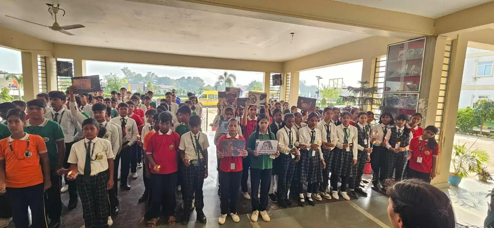 राइजिंग सन वर्ल्ड स्कूल में श्रद्धांजलि, बच्चों ने मासूम की याद में जलाई कैंडिल