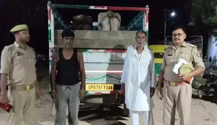 जानकारी के अनुसार थाना शहाबगंज पुलिस टीम द्वारा मुखबिर से सूचना मिली कि दो व्यक्तियों द्वारा 01 पिकअप वाहन से 04 राशि गोवंशीय पशुओं (जिसमे से दो गाय, 01 बछिया 01 बछड़ा) को एक दूसरे की गर्दन मे रस्सी से बांधकर क्रूरता पूर्वक वाहन में लादकर अवैध परिवहन कर ले जाया जा रहा था सूचना पर तत्काल स्थानीय पुलिस टीम द्वारा ठेकहा पुल के पास घेराबन्दी करके गोवंशों की बरामदगी करते हुए दोनो अभियुक्तों को गिरफ्तार कर लिया गया। गिरफ्तारी व बरामदगी के आधार पर अभियुक्तगण के विरूद्ध मुकदमा अपराध संख्या 77/2024 धारा 11 पशु क्रूरता निवारण अधिनयम का अभियोग पंजीकृत कर आवश्यक वैधानिक कार्यवाही की गयी ।