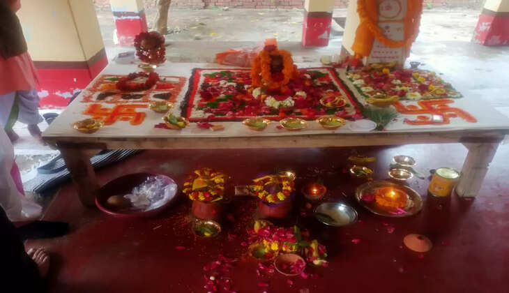वही भगवान नन्दी की नवीन प्रतिमा की स्थापना किया गया।इस अवसर पर श्रीमती मंगला तिवारी,अमरेश्वरा नन्द पाण्डेय,राजन पाण्डेय, सर्वेश्वरा नन्द पाण्डेय, रामप्रसाद,नवीन, गौरीशंकर, बैरिस्टर पाण्डेय, मुरारी पाण्डेय, चन्द्रेन पाण्डेय ग्रामप्रधान मुरारी, संतोष सिंह, बनारसी सिंह, राधेश्याम, अरुण सिंह,सरजू, जोगिंदर सिंह सहित आदि भक्तजन उपस्थित रहे।