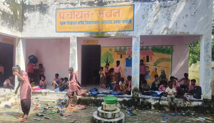 कक्षा 1 से 8 तक की परीक्षाएं पंचायत भवन में जारी