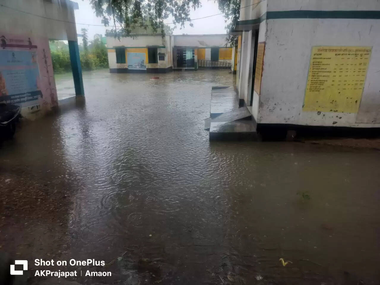 भारी बारिश से विद्यालय परिसर में घुटनों तक पानी